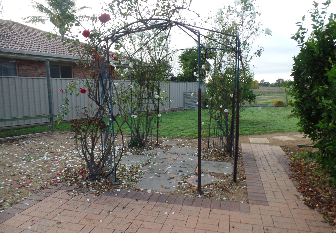 Lovely three bedroom home features; main with ensuite & WIRs, BIRs to others, Large open Lounge with Gas Log Heater, Evap Cooling throughout with ceiling fans. Open Kitchen & Dining with electric cooking. Main bathroom with bath & shower, toilet separate. Lovely enclosed yard with two garden sheds & sprinkler system. Single carport with Backyard access. NO PETS