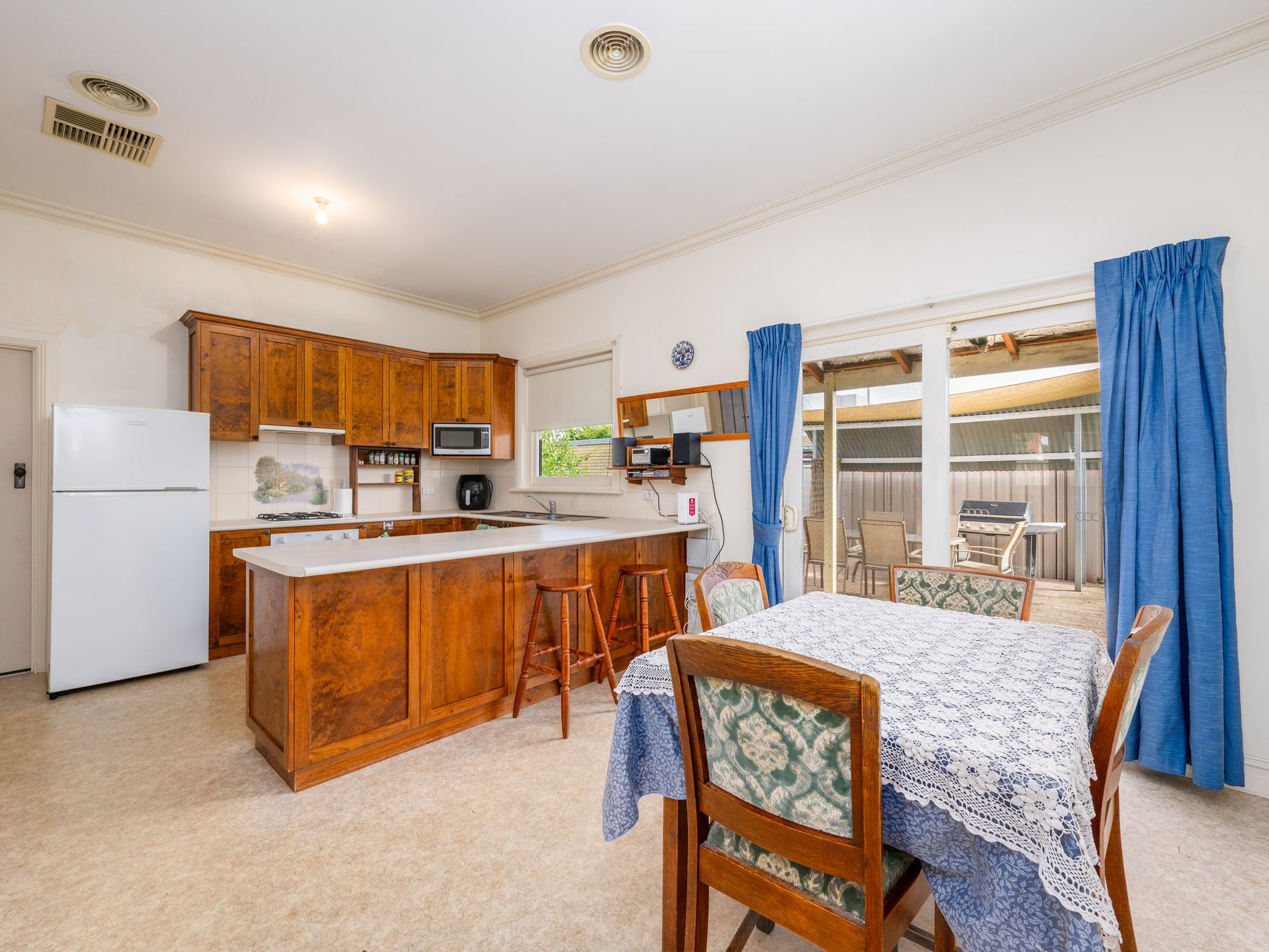 Period-style high ceilings, picture rails and decorative ceiling roses add a touch of grandeur throughout, while ducted gas heating, ducted evaporative cooling and 16 solar panels provide excellent year-round efficiency.