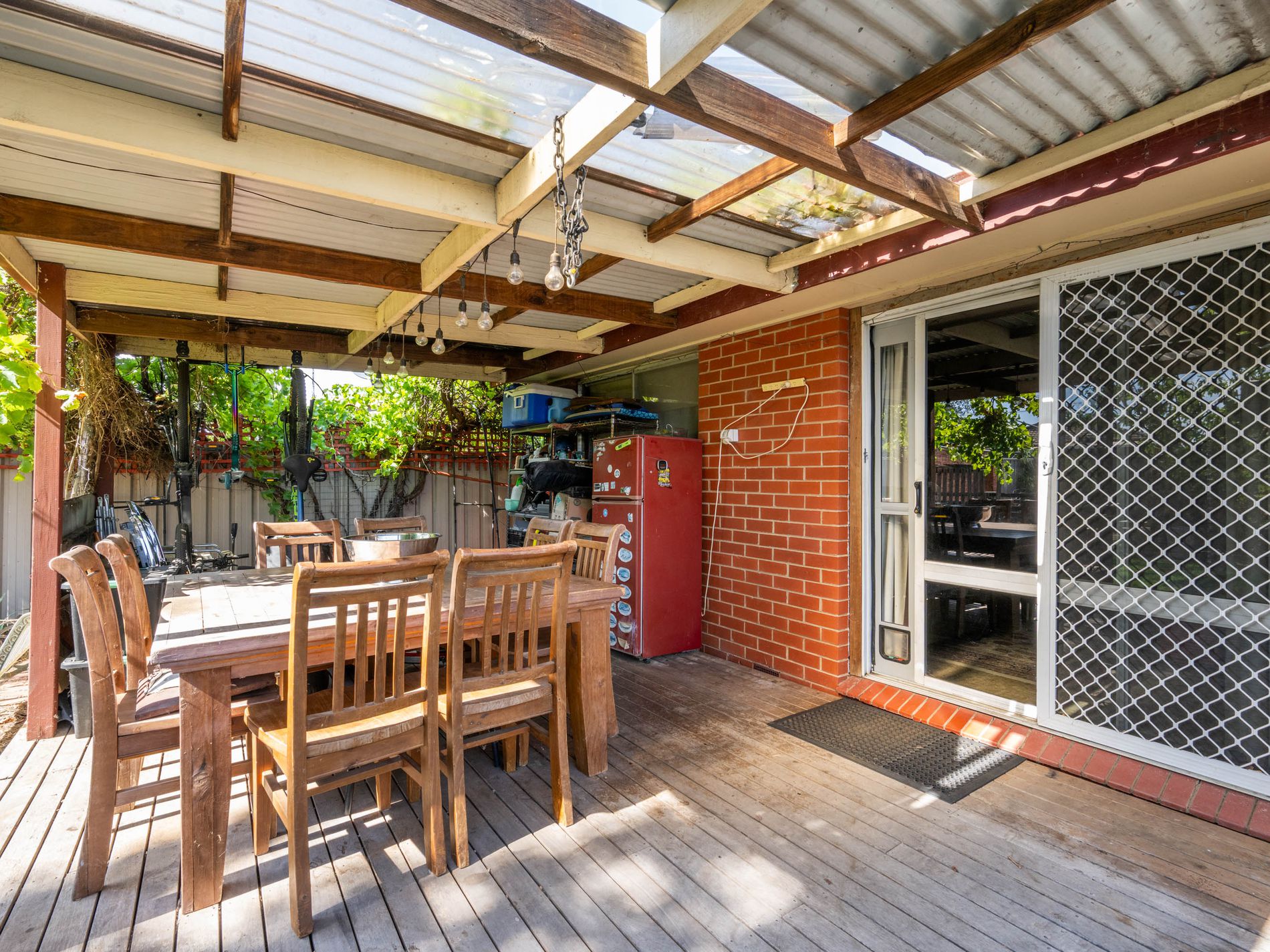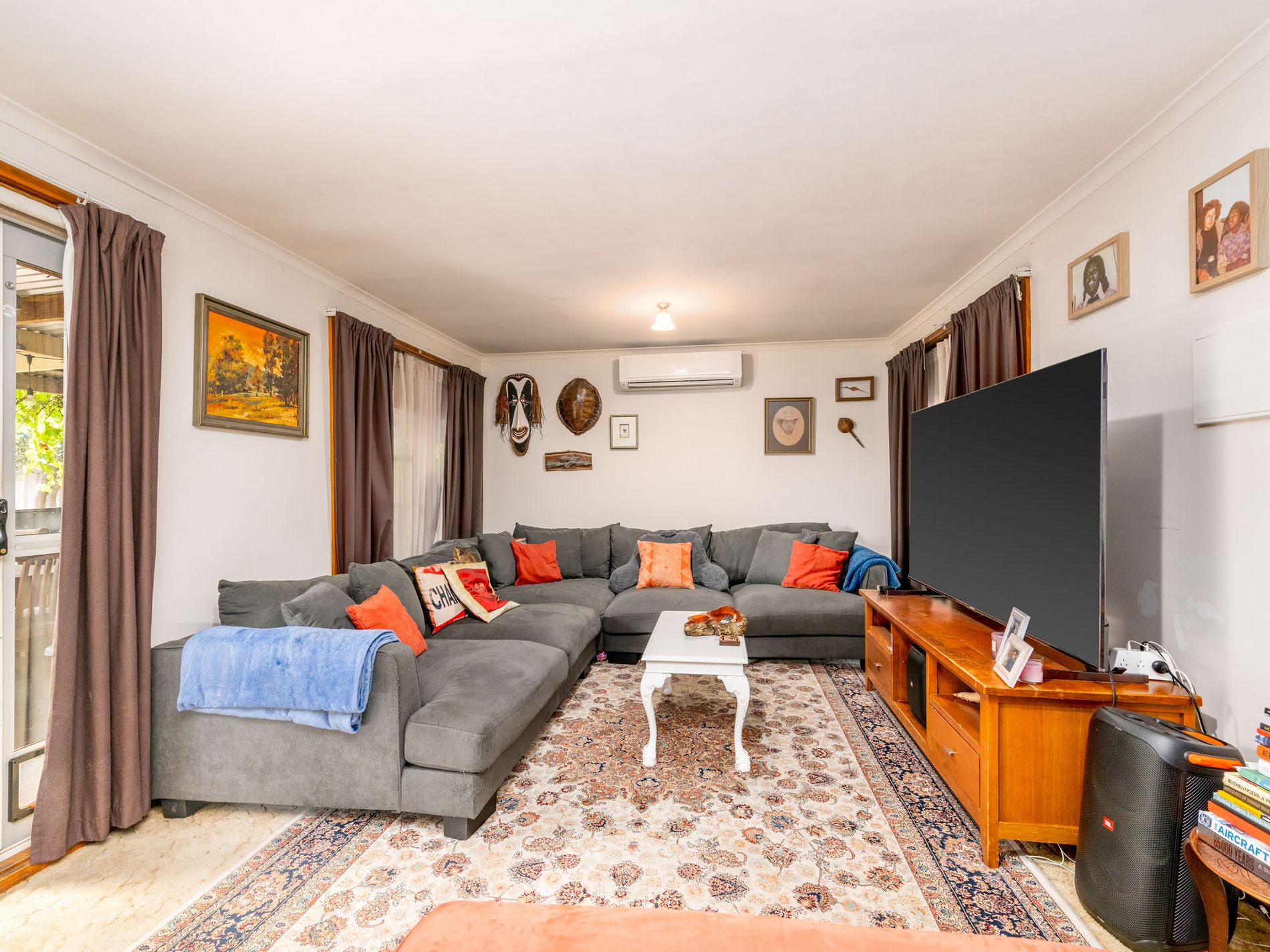 All three bedrooms are fitted with ceiling fans, while the kitchen features electric cooking appliances and overlooks the adjoining dining area, making everyday living and entertaining easy. The spacious lounge room is filled with natural light and opens via a sliding door to the pergola area, creating a seamless indoor–outdoor flow.