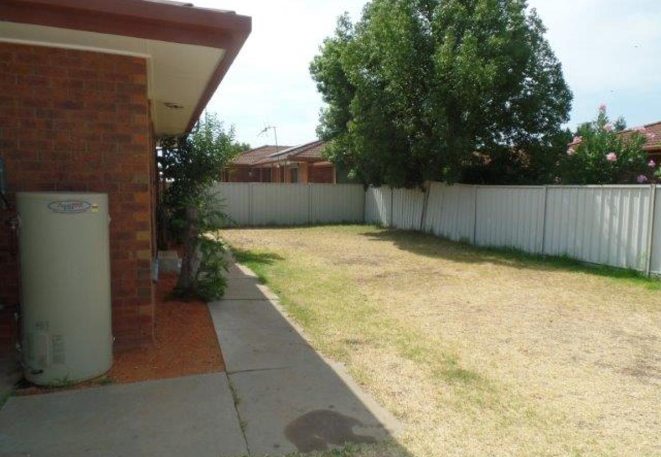 A very neat and tidy 2 bedroom unit. Both bedrooms have built-in robes. The “eat-in style” kitchen is adequate for the size of the unit. The good sized lounge has both heating and cooling and the bathroom (shower & vanity) includes the laundry facilities. There is a separate toilet. At the front is a single carport, extra car space, verandah across the porch. The major difference with this unit is the spacious and secure backyard. Land area 410m2.