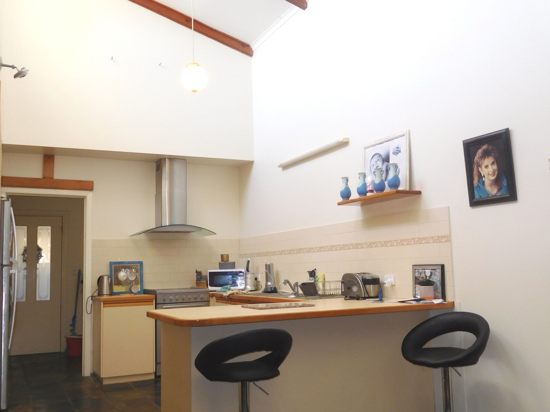 Lounge room has a wood fire heater.