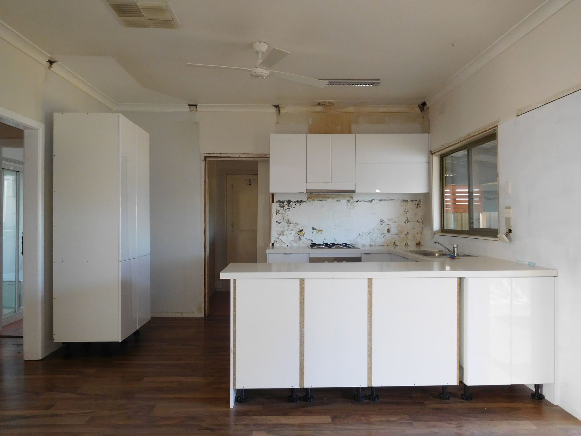 Partly renovated kitchen.
