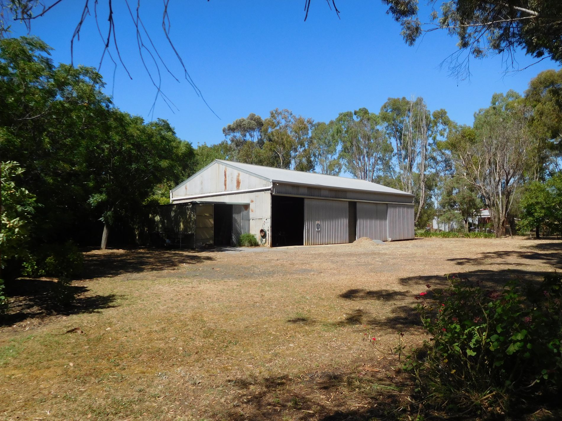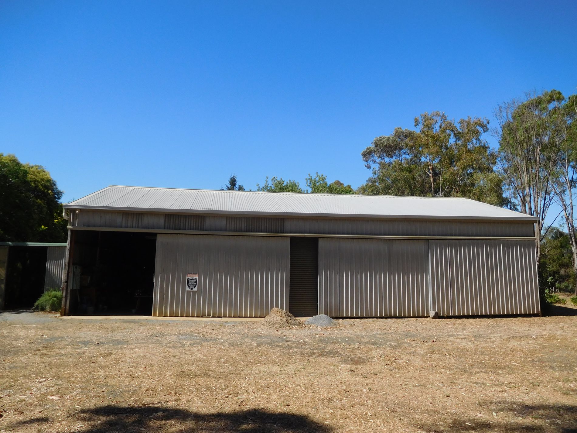 Shed (19m x 10m) has 3 sliding doors (suitable for Caravan Storage).