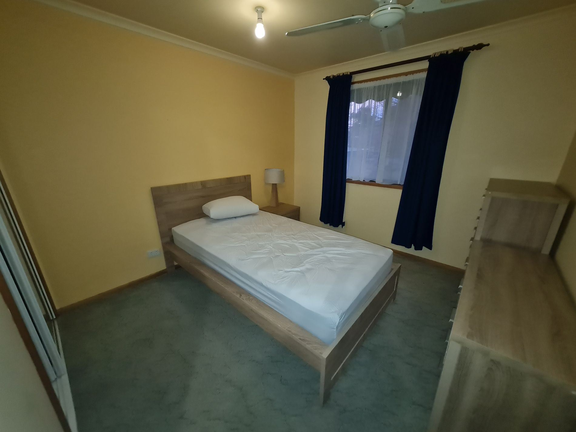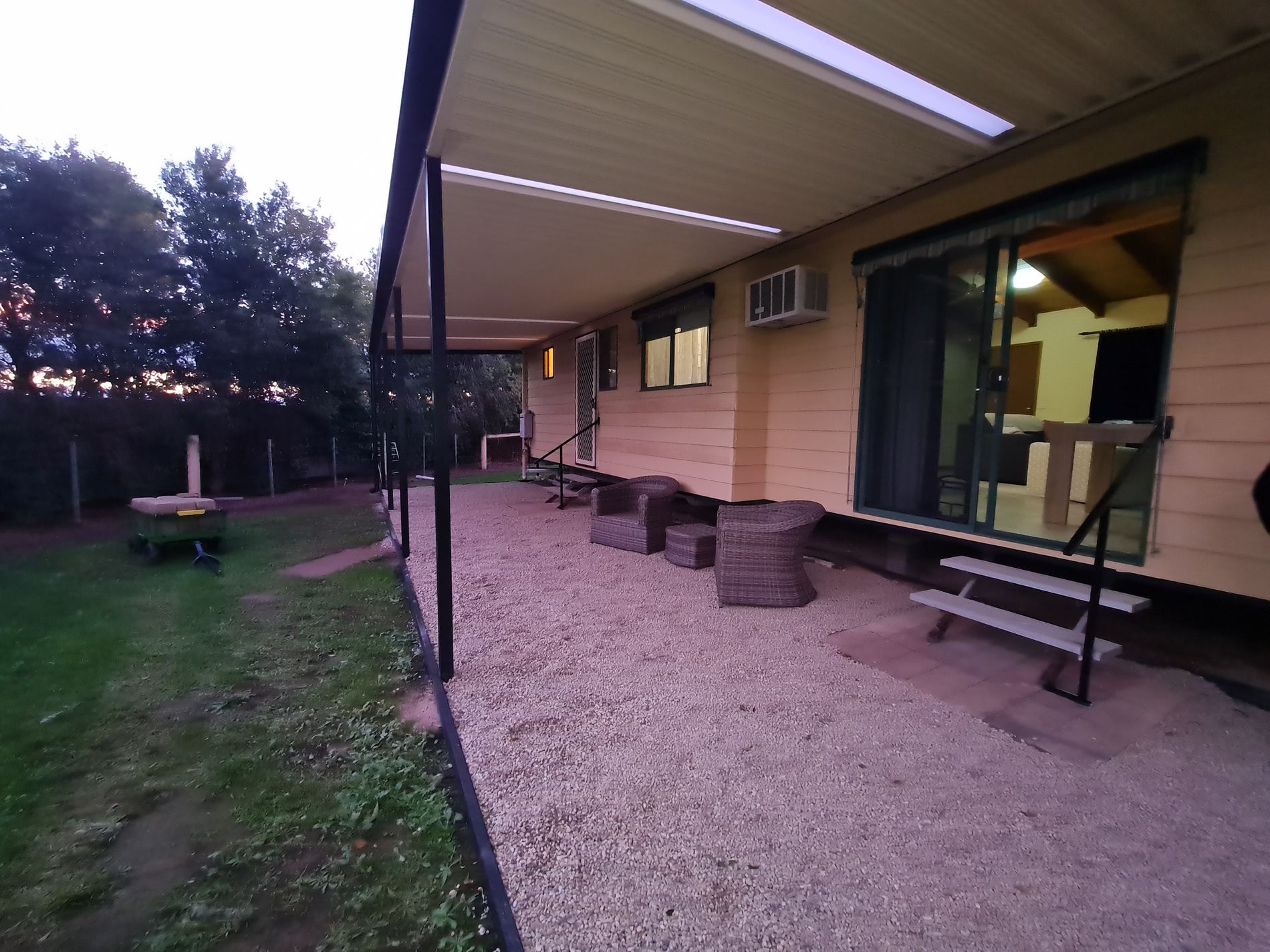 Located just out of Shepparton, in private spot is this 2 bedroom home. The open living, kitchen and dining area boasts cathedral like ceilings and a large split system. Both of the bedrooms have built in robes and the toilet is separate to the bathroom. Outside offers a large verandah at the back and a single carport.