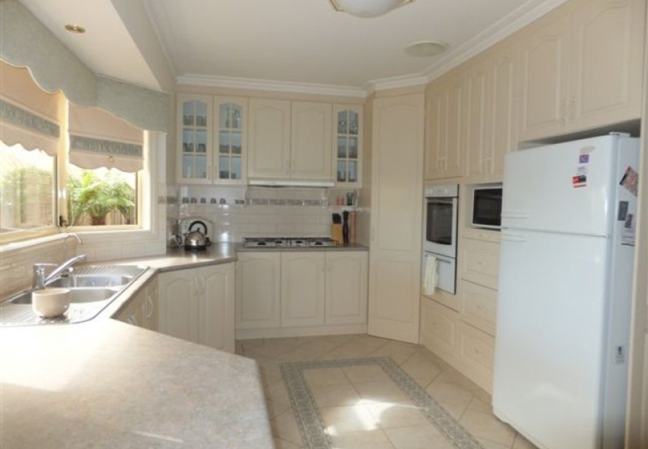 This beautifully presented 3 bedroom + study home features walk in robe & ensuite to the main bedroom and built in robes in the others, spacious kitchen overlooking the dining & family areas. Separate lounge with large bay window, ducted gas heating, ducted evaporative cooling, ducted vacuum system and 8’ 6” ceilings throughout. There’s also a big double garage with auto doors plus additional storage area, pergola, pop up sprinkler system and secure back yard.