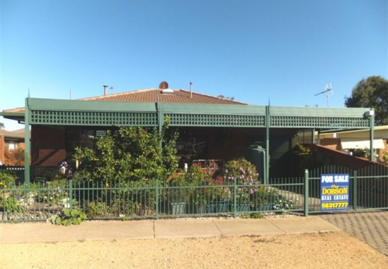 Located opposite the golf club, this neat & tidy unit has so much to offer, including ensuite & reverse cycle split system air conditioner in the main bedroom, kitchen/meals area, built-in robes in both bedrooms, separate lounge with ceiling fan & gas heater, ducted evaporative cooling and alarm system. Outside there’s a large single garage (11m x 3.5m) and Vergola (7m x 3.5m) which incorporates the single carport.