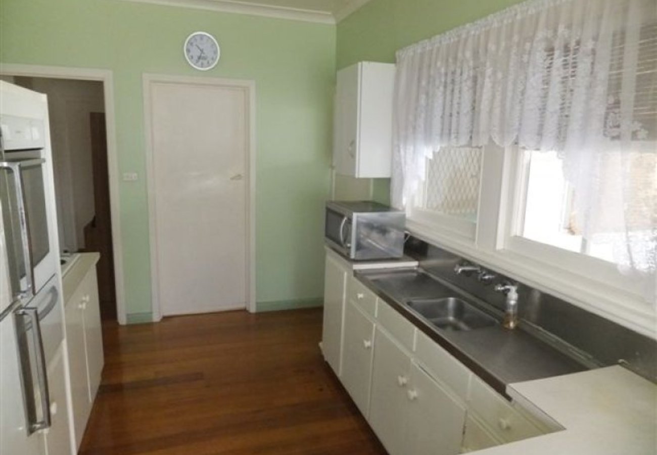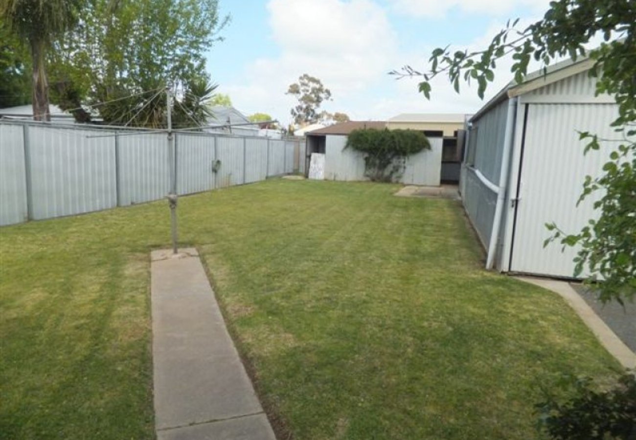 This lovely 3 bedroom home in Mooroopna is situated close to schools & supermarket and features built-in robes in all bedrooms, bright kitchen / meals area, separate lounge, gas heating, air conditioning, additional rumpus / family room, polished floorboards and 9’ ceilings throughout. There is a large pergola, carport, shed, double garage (7.5m x 6m) with concrete floor & power, various other shedding and a good size secure backyard. Beautifully presented and very well priced.